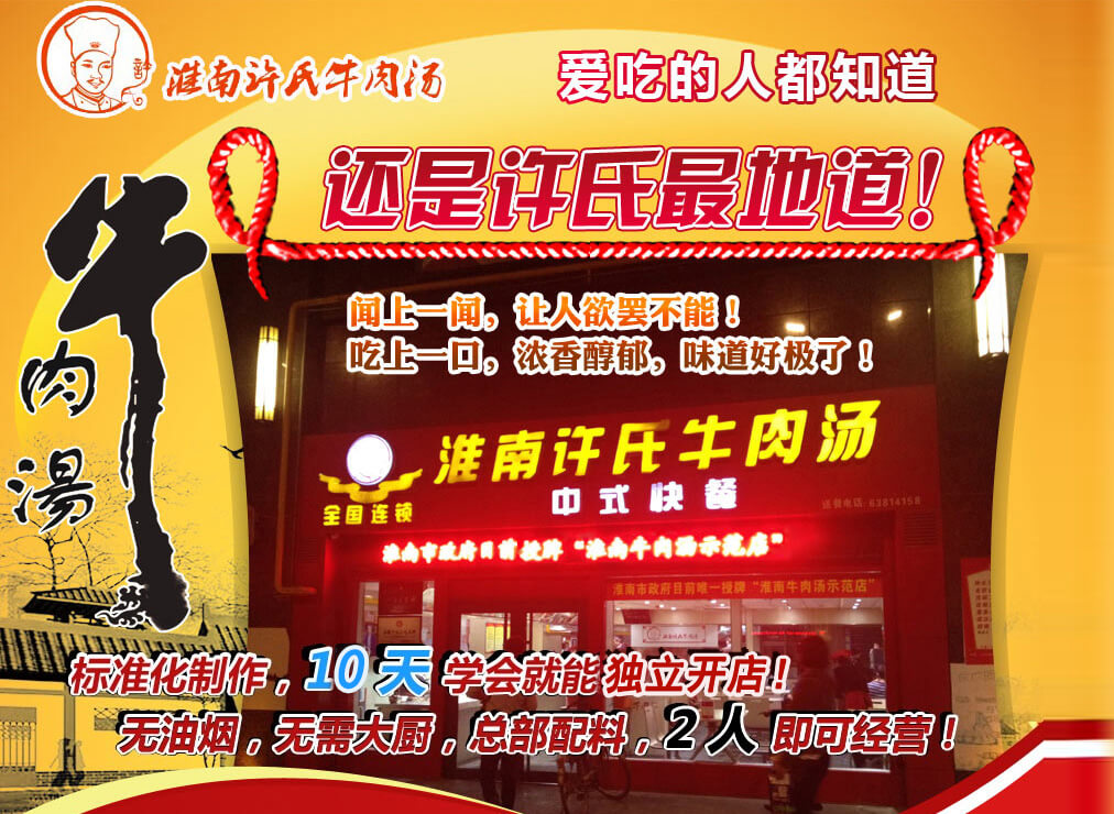 • 大眾創業首選好項目-淮南牛肉湯-正宗許氏淮南牛肉湯加盟